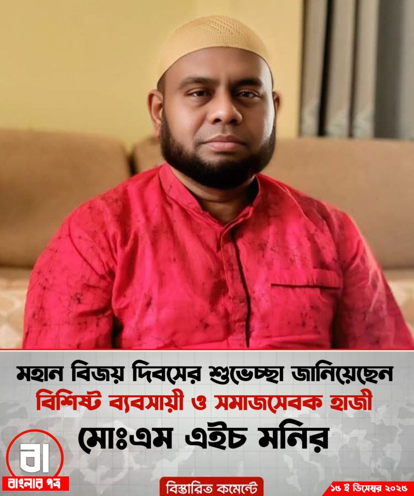 মহান বিজয় দিবসের শুভেচ্ছা জানিয়েছেন বিশিষ্ট ব্যবসায়ী ও সমাজসেবক হাজী মোঃএম এইচ মনির