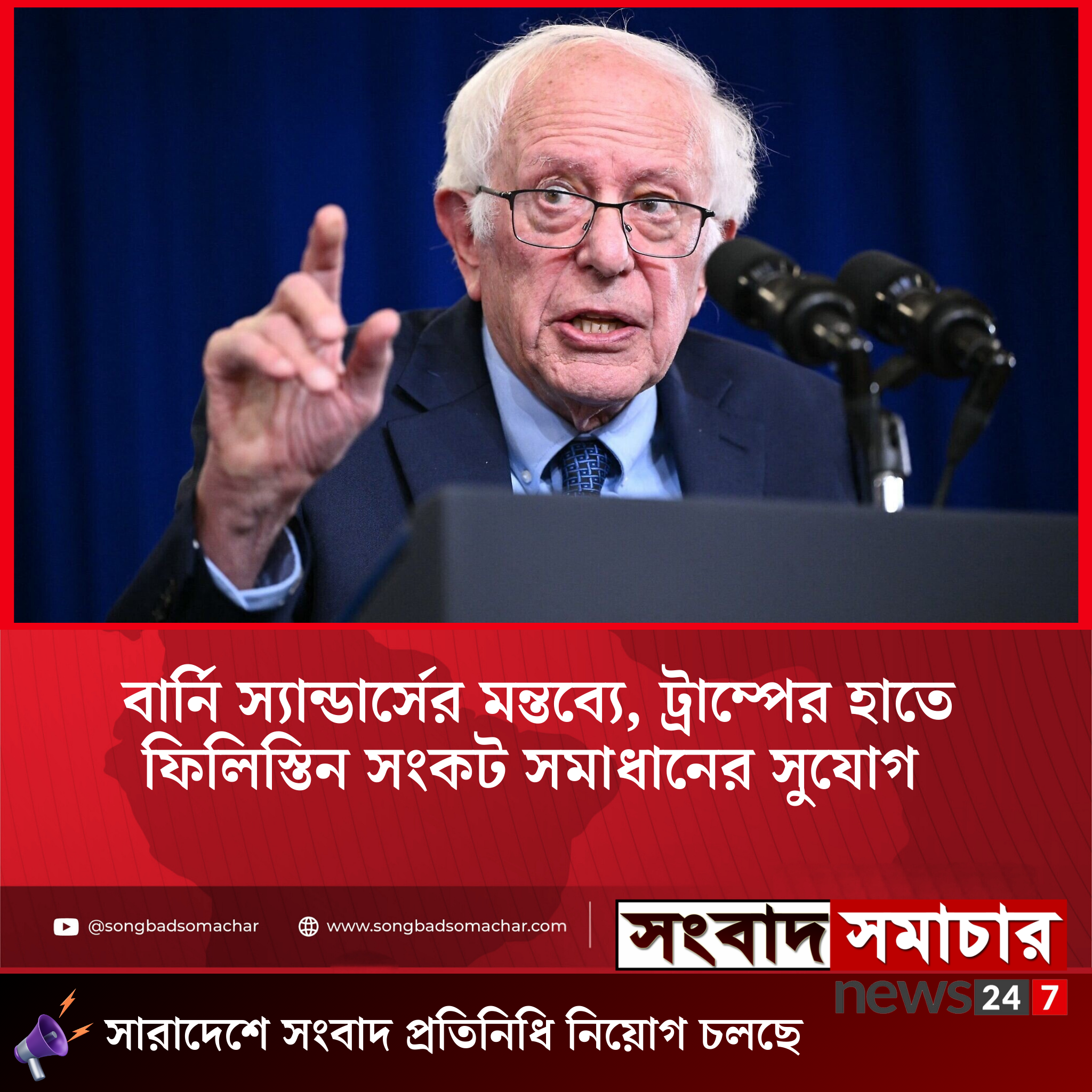 বার্নি স্যান্ডার্সের মন্তব্য, ট্রাম্পের হাতে ফিলিস্তিন সংকট সমাধানের সুযোগ।